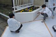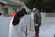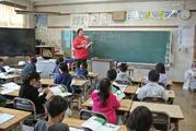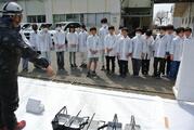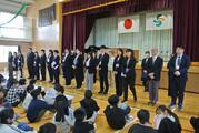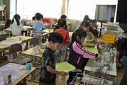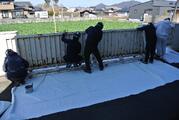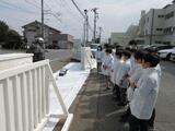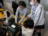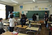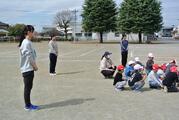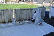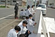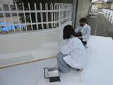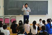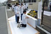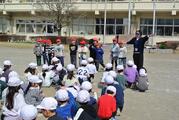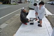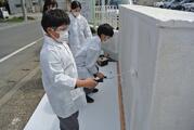 3月23日 ヤマダインフラテクノス株式会社の方々に教えていただきながら5年生が職業体験でペンキ塗りをしました。上着や保護メガネも用意していただきました。