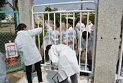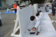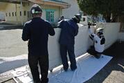 3班に分かれて北東門、北西門、南門の門扉と壁を塗装体験しました。