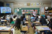 いろいろな国の旗を見て、国名とあいさつを発表したり、映像を見て確認したりしました。