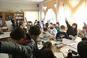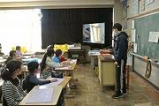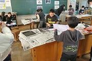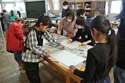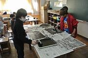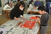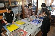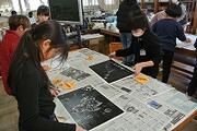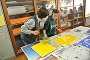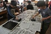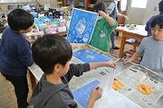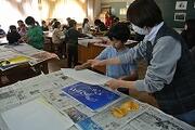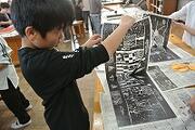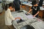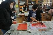 12月5日 図工の時間に彫刻刀ボランティアの方々に手伝っていただき、彫りあがった作品の刷りを行いました。