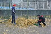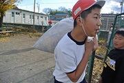12月5日 昼休み 用務員さんの手伝いを進んで6年生有志が行いました。