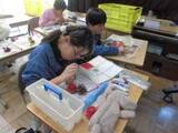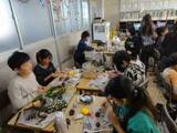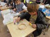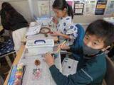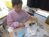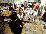 松ぼっくり等に絵の具で色を塗ったり、ビーズなどをつけたりして、クリスマスの飾りを作りました。