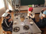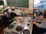12月17日 3・4時間目に家庭科の「食べて元気に」の単元で、おいしいご飯の炊き方について学習しました。