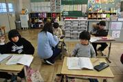 12月18日 2年生は算数でかけ算で「答えが同じになる式をつくろう」や「3つのかずのけいさん」、4年生は図工で「紙でネコバスをつくろう」、5年生は算数で「あんざんをしよう」でタブレットで問題を解きました。