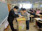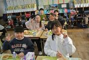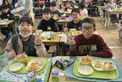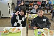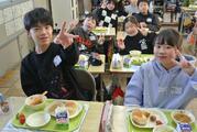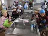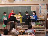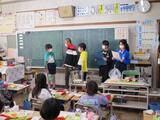 給食レンジャーの応援のおかげか、苦手なメニューに挑戦できた児童もいました。給食旬間中、2年生以上の教室も回る予定です。