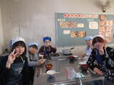 ※感染症対策のため前向き給食です。ご家庭でも、感染症等から身を守るために、「正しい手洗い」、「換気」、「マスクの着用」、「咳エチケット」、「できるだけ人混みを避け外出を控える」などの実践をお願いします。また、具合が良くない時には、早めに医療機関の受診をお願いします。