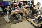 1月28日 長縄集会に向けて、体育委員会の児童が担当学級の回数を数える練習をしました。