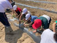 5月30日(木)にスマイル・チャレンジでサツマイモの苗を植えました。用務員さんの植え方の説明をしっかりと聞き、1人2本ずつの苗をきちんと植えることができました。秋の収穫を目指して、しっかりと水やりをしたいと思います。