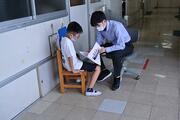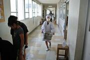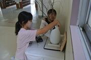 10月10日 6年生児童が来賓玄関にある卒業生の作品(花瓶)を掃除してくれました。