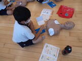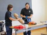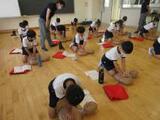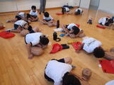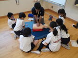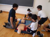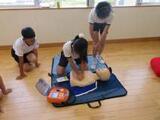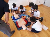 胸部圧迫やAEDの使い方を人体の模型を使って、実際にやってみました。