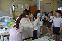 4月14日 2校時に1年生、3校時に2年生、4校時に3年生の身長・体重を保健室で計測し、視力検査は体育館で行いました。
