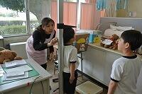 4月11日 2校時に4年生、3校時に5年生、4校時に6年生の身長・体重を保健室で計測しました。視力検査は体育館で行いました。