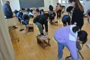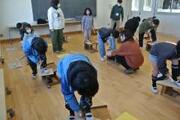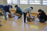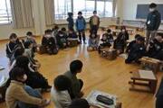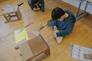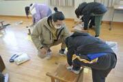 4年 図画工作 投稿: HP担当 (17:36) 2月13日 「カクカク板を組み合わせたら」の単元でのこぎりを使用しました。5名のボランティアさんに来ていただきました。 ①ボランティアの「のこぎり引き」実演 ②のこぎりを使って板を切りました。 ③切った板にやすりをかけました。 -
